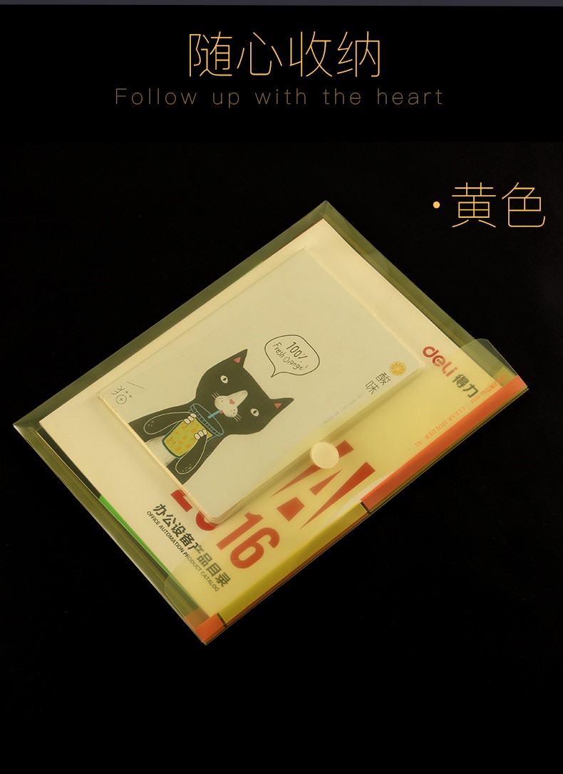 得力(deli)5504 按扣文件袋 A4魔术贴纽扣袋 文件袋 资料袋 颜色随机12个/袋